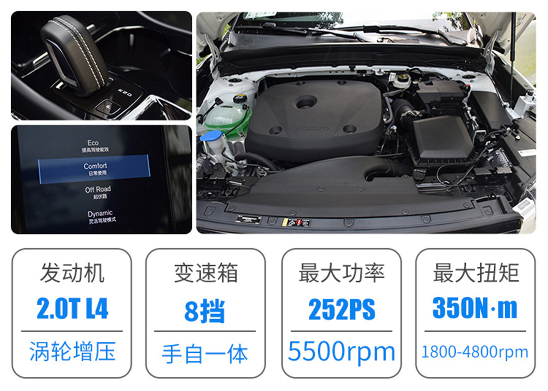 沃尔沃XC40的2.0T发动机出乎意料地成为了三款车型中动力参数最强的一款,252匹马力和350牛·米峰值扭矩的账面数据非常出色,但是受限于偏向于舒适性的油门和变速箱调教,XC40的动力感受甚至不及XT4,而0-100km/h加速也需时8.5秒。