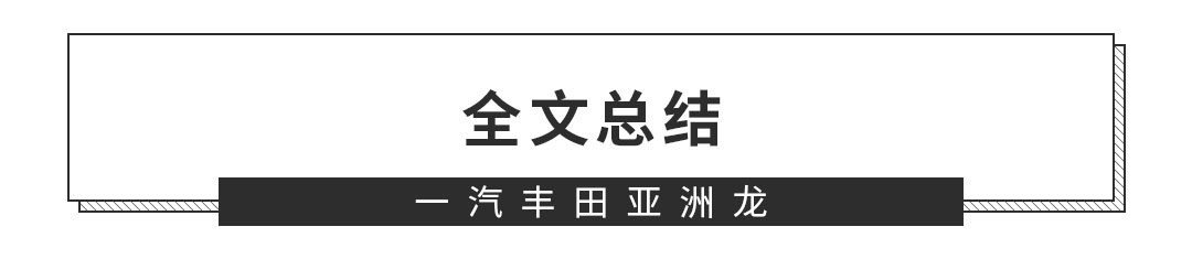 相比原滋原味,教授觉得因地制宜,读懂消费者需求更为重要。亚洲龙聪明的舍去3.5L大排量发动机,在一些细节上进行优化。比如增配等行为,新增副驾老板按键、全景天窗、雾灯、后排USB充电口以及220V电源等,并且在整体NVH上更有突出的表现,这些更能讨好国人。融大智,雕细美,一汽丰田所要传递,不外乎就是这些。动感、凌厉、时尚的全新旗舰轿车,比原滋原味更好的亚洲龙,未来可期。