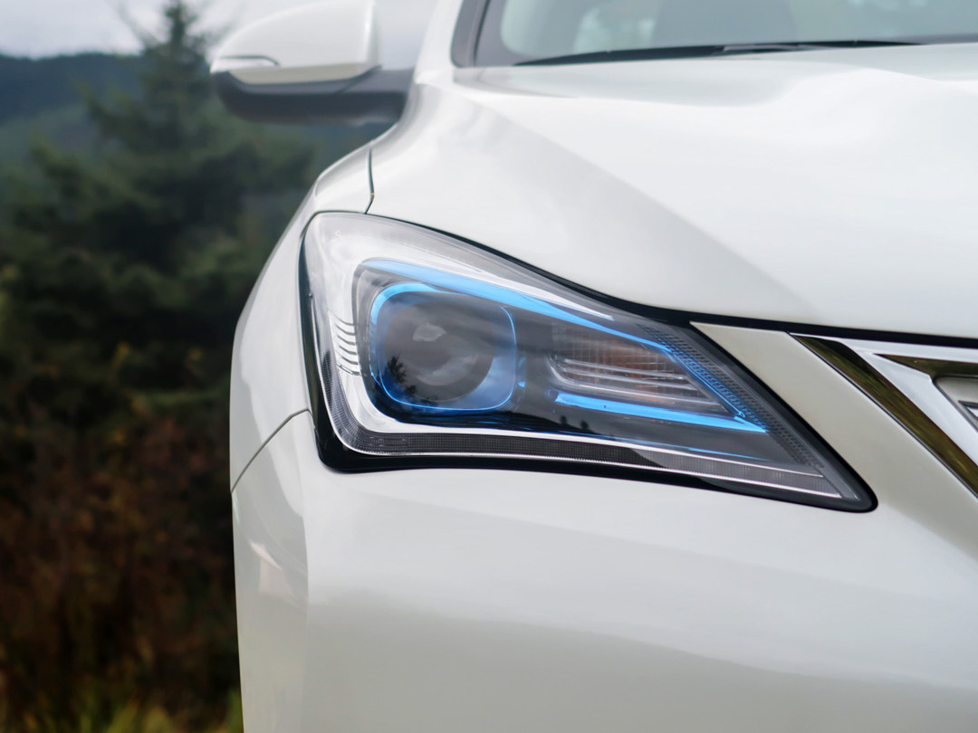 虽然受制于成本,没有使用上更加节能的LED大灯,但带透镜的远近光一体式卤素大灯配合上蓝色的装饰件也能有不错的视觉效果。