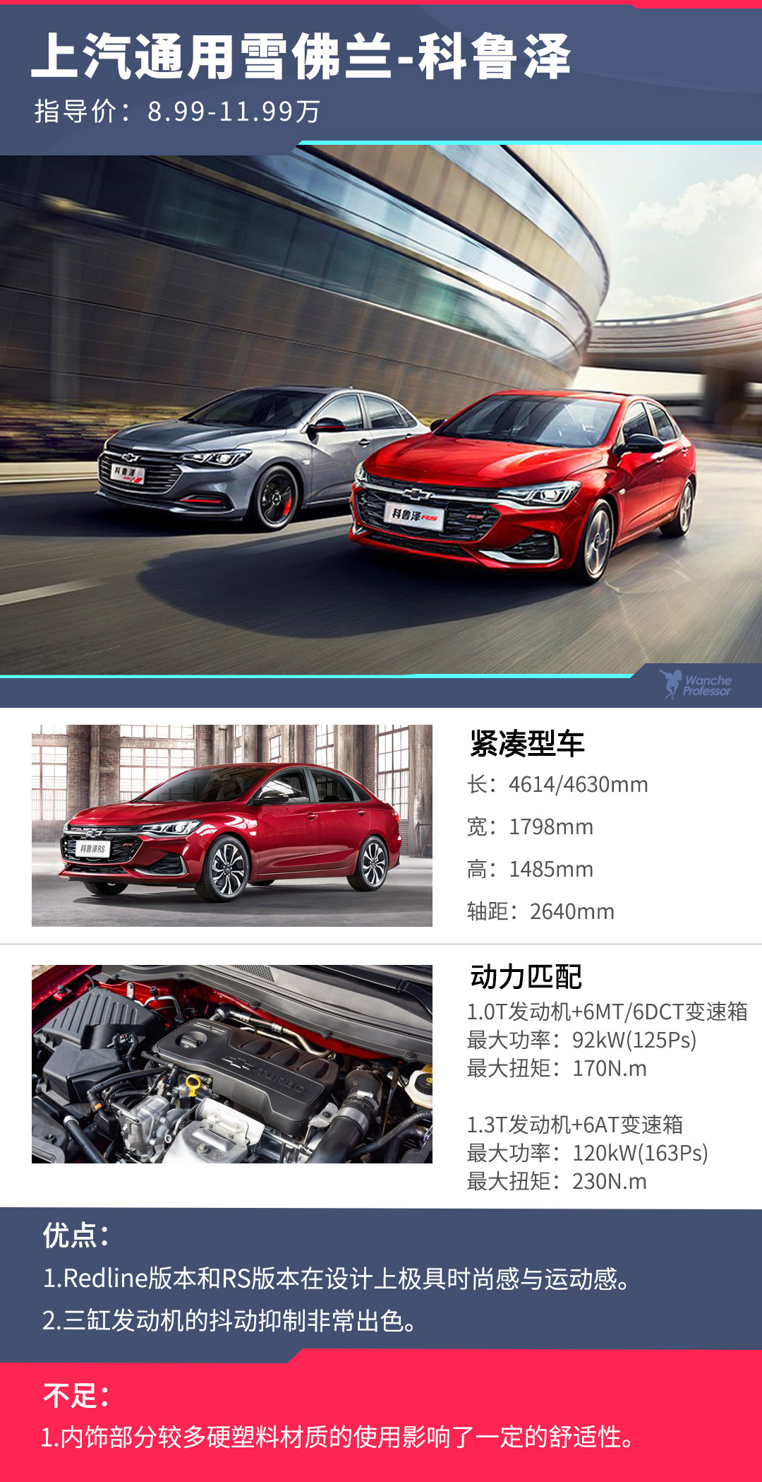 科鲁泽的售价为8.99-11.99万,且拥有5款车型版本可供选择。而且从车型表中可看出,科鲁泽除了入门版外,另外4款车型还区分了Redline版本和RS版本,除了配置有所区别外,车型之间的外观设计以及动力总成也有所不同。