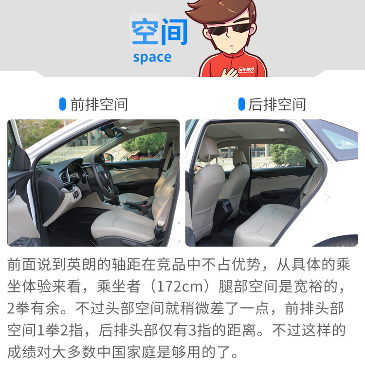 英朗的轴距在竞品车型中是最小的,不过英朗还能卖得这么好,说明注重空间的国人对它还是满意的,具体的空间表现接下来教授会细说。