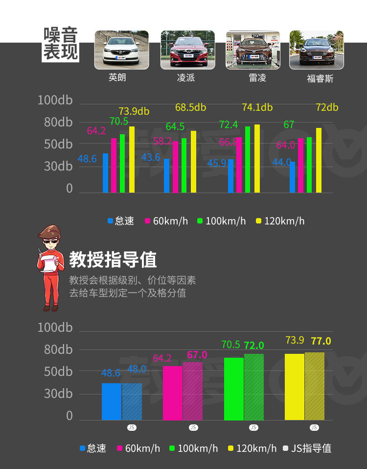 英朗的噪音值除了怠速之外均在推荐值之内,怠速阶段也不过高了0.6分贝。