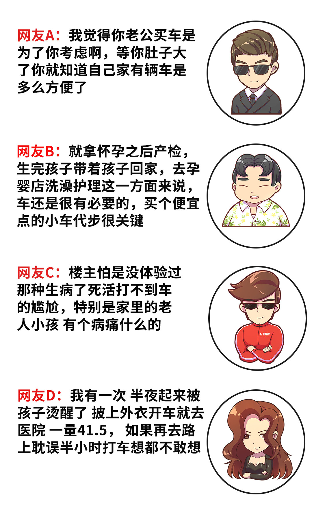 最近在一个论坛看到的一个贴子,浏览量足足达到了27万多,有许多人都发表了自己的意见。贴子简单来说就是:夫妻一个年总收入30万,有4位老人家需要抚养,每个月要还1万的房贷。最近女主怀孕了,而男主执意要购车。女主认为现在家庭支出大,买车后,停车难,车位贵,城市拥堵等。有了孩子,车就是刚需的吗?女主认为一辆车那么贵,每年还要花那么多钱保养,真的不如打车。