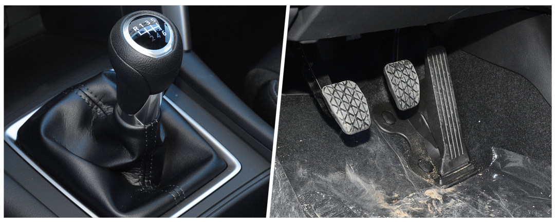 最后一个,是熟悉手动挡驾驶之后的。跟趾的难易程度!跟趾简单来说就是,你在减速的时候为了出弯有更好的加速表现和更平顺的换挡,右脚要同时踩油门和刹车,令到转速匹配降档后的挡位。跟趾的关键就是看油门和刹车踏板的高低差和距离。离的太远或者高低差太多,在日常驾驶中都很难做出跟趾动作。不过这些都可以通过安装延长的刹车踏板和后期的高低调整解决。