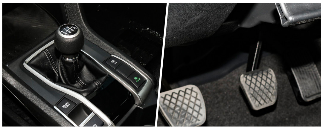 换挡行程较长,吸入感基本没有。同样具有AUTO Hold,半坡稳稳的起步。思域的转速与挡位的配合非常的完美,宽容度很高。即便没有掌握降低补油的技巧也不会顿挫的太厉害。思域采用吊脚油门的设计,刹车踏板与油门的距离也适中,做跟趾比较容易。手挡的驾驶感觉要比CVT自动挡要高出不少,而且,思域手挡配置也不低,年轻爱驾驶的话,手动挡思域是非常不错的选择。