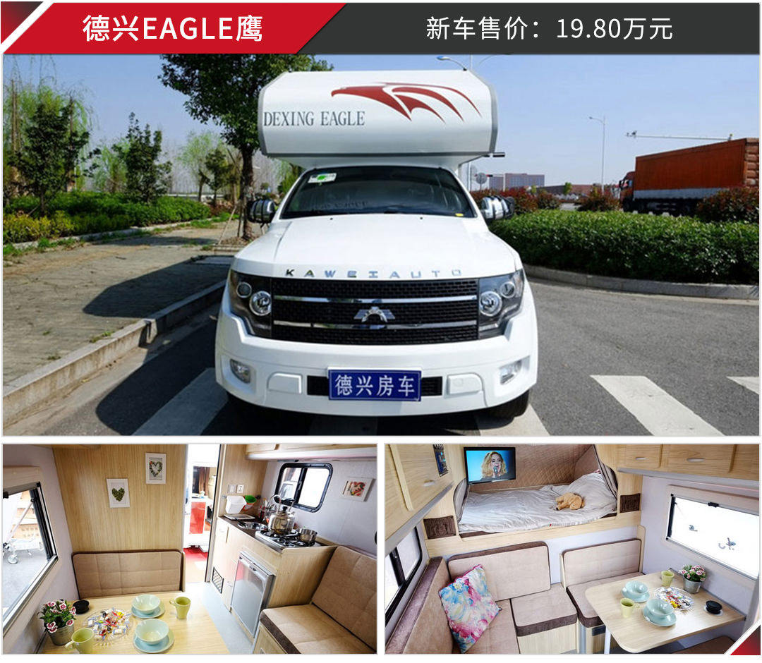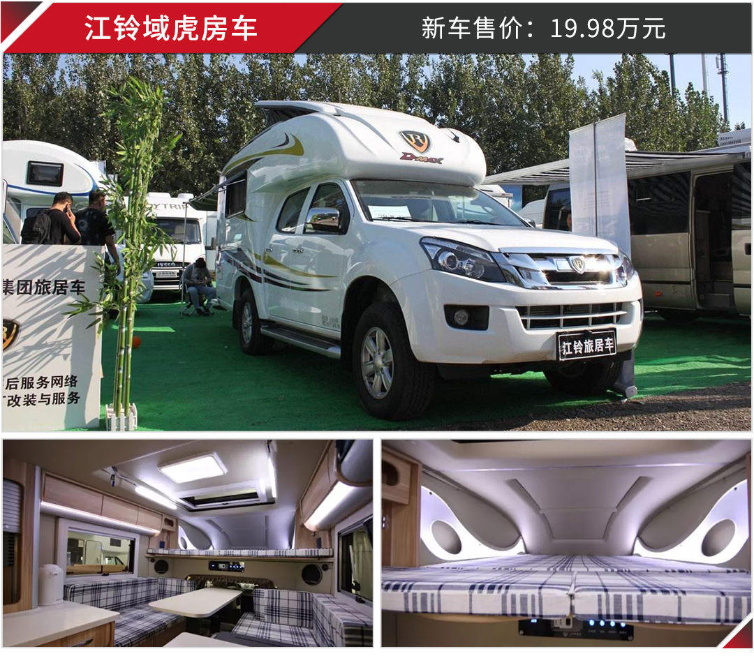 房车听起来好像各种高大上,但其实目前市面上已经有很多国产房车,价格大多在20万元左右,如果是拖挂式的话,价格甚至已经下探到10万元以内。以价格20万元以内为例,我们已经可以买到以下这几台房车。
