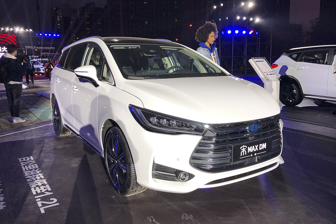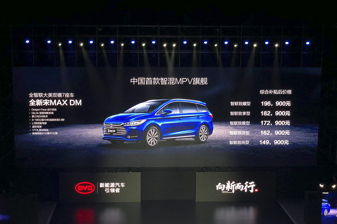 比亚迪宋系列,全新宋MAX和全新宋MAX DM一起亮相。此前2019款也就是最新版宋MAX已经上市,外观细节有了微调,内饰则升级了可旋转式中控屏。而在本次发布会上正式上市,综合补贴后售价为14.99-19.69万元的全新宋MAX DM与全新宋 MAX的设计基本相同,采用“Dragon Face”的家族设计风格,细节处采用蓝色元素彰显其混动身份。新车采用的是比亚迪最新的DM技术,搭载1.5T发动机匹配6速自动变速箱,整个动力系统的综合功率为228kW,综合扭矩为495N·m,可带来百公里加速6.9秒;并提供纯电续航81/51公里两个版本。