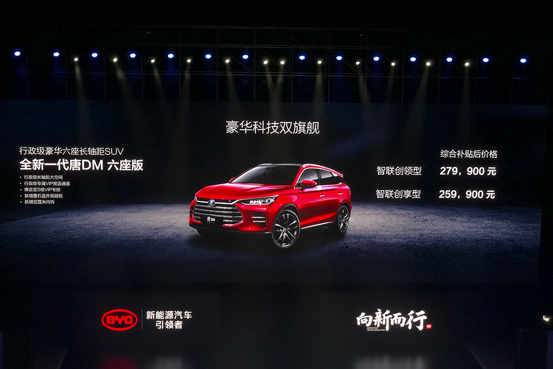 比亚迪唐系列,全新一代唐燃油六座版、全新一代唐DM六座版和全新一代唐EV正式上市,售价分别为15.99万元,25.99-27.99万元(综合补贴后),25.99-35.99万元(综合补贴后)。这次“2+2+2”座椅布局的六座车型到来将很好地补充五座车与七座车之间的这一市场空缺,也能在避免两年一审的情况下实现最大化载人能力,进一步丰富消费者的选择。