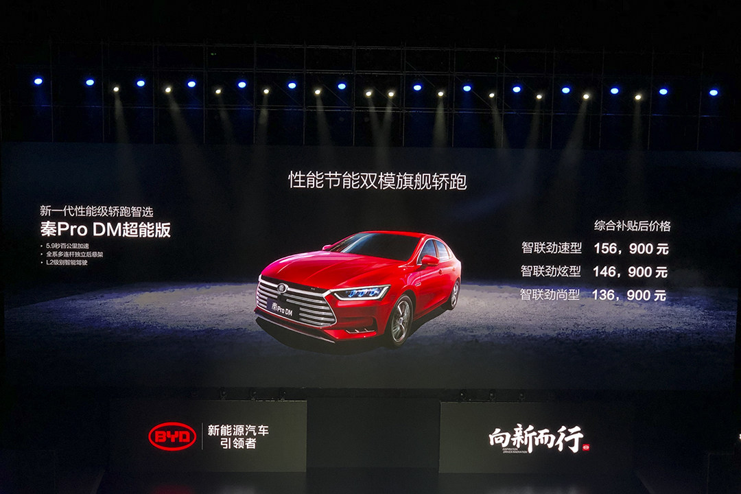 此外,纯电动的秦Pro EV超能版也在发布会上开启预售,预售价格为19-20万元,新车将会搭载L2级别自动驾驶功能,综合工况续航里程为520公里。
