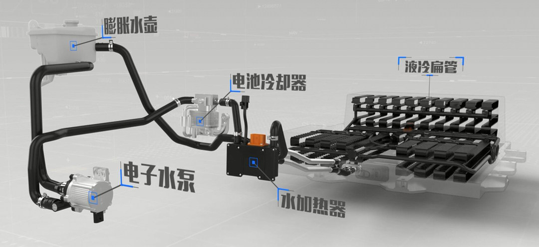 为保证电池能在各种温度下都能正常工作,iEV6E使用了与特斯拉工作原理类似的液冷电池热管理系统,该热管理系统在保障电池在极端温度下正常工作的同时,还可有效降低电池单体失效引发电池包起火、爆炸等问题,提高电池使用寿命、快充与温度控制性能。