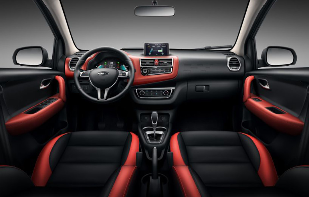 江淮iEV6E内饰并没有什么亮点,但红黑搭配色调倒是有几分运动感,功能区域物理按键布局清晰,可提供良好的视觉效果,实用性与方便行具佳。