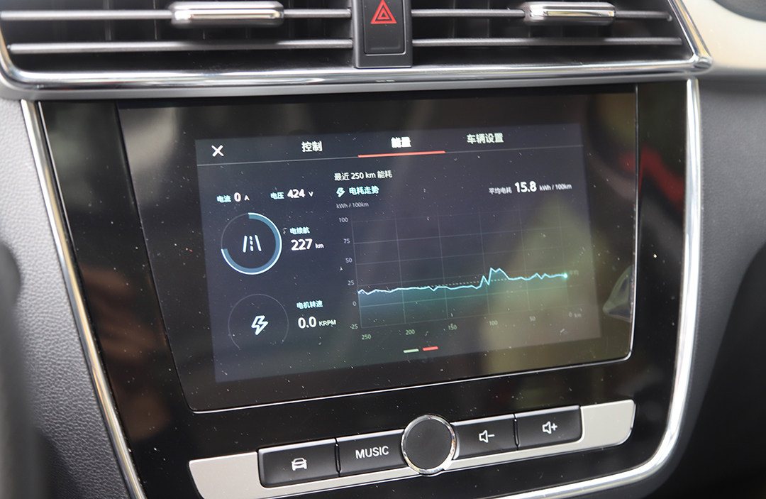 纯电动名爵EZS与燃油版车型相比整体布局并没有明显的变化,依旧维持了简洁明了的布局,仅换装了新样式的仪表盘,排挡升级为旋钮式机构、手刹也改为电子式,一定程度上提高了车厢的档次感。