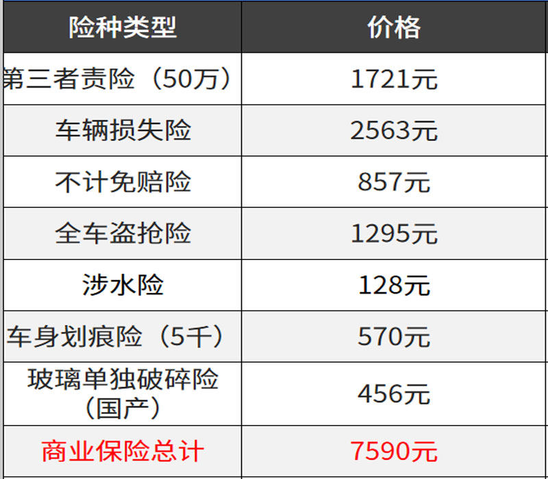 作为一台全新购买的车型,商业保险上的选择首年一般会选高一点,下面以基本需要或者推荐的险种进行计算: