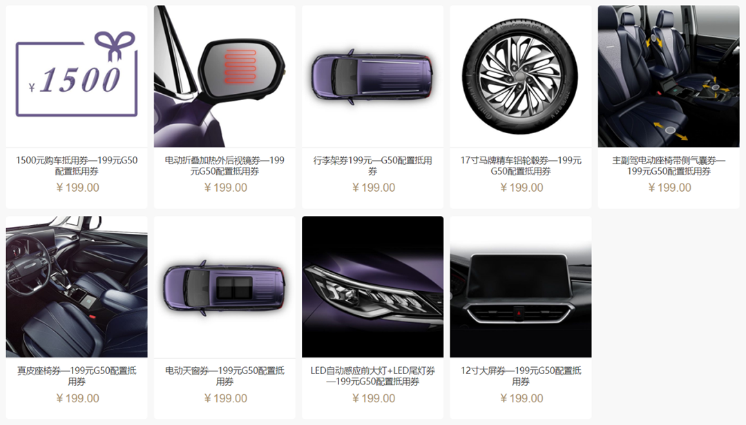 外观方面就见仁见智的,而大通G50最具优势的地方在乎,它可以通过定制的方式去打造一款属于自己的爱车,这玩法目前来看还是相当新奇,其定制模式大到对动力系统、外观内饰,小到对车厢配色、氛围灯甚至是精品小件都可以根据厂商提供的多种方案,来根据个人需求进行选择,这种互动感还是相当强的。