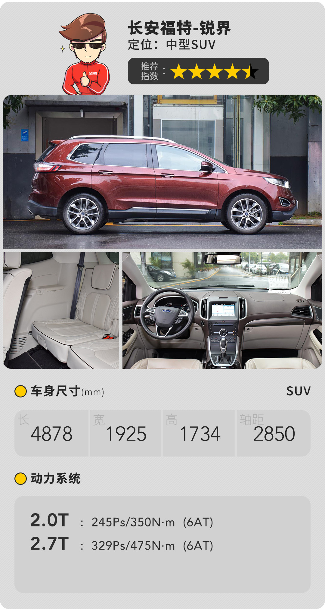 客观来看,不少消费者会更倾向于丰田汉兰达,的确汉兰达有它独特的魅力。但是上面推荐的三款车型也是各有千秋,特别是在价格和配置山都有很大的优势。如果一定要让教授选一款的话,福特锐界会更得教授心,毕竟第三排会有出色的表现,而这正是购买7座SUV的必要需求。