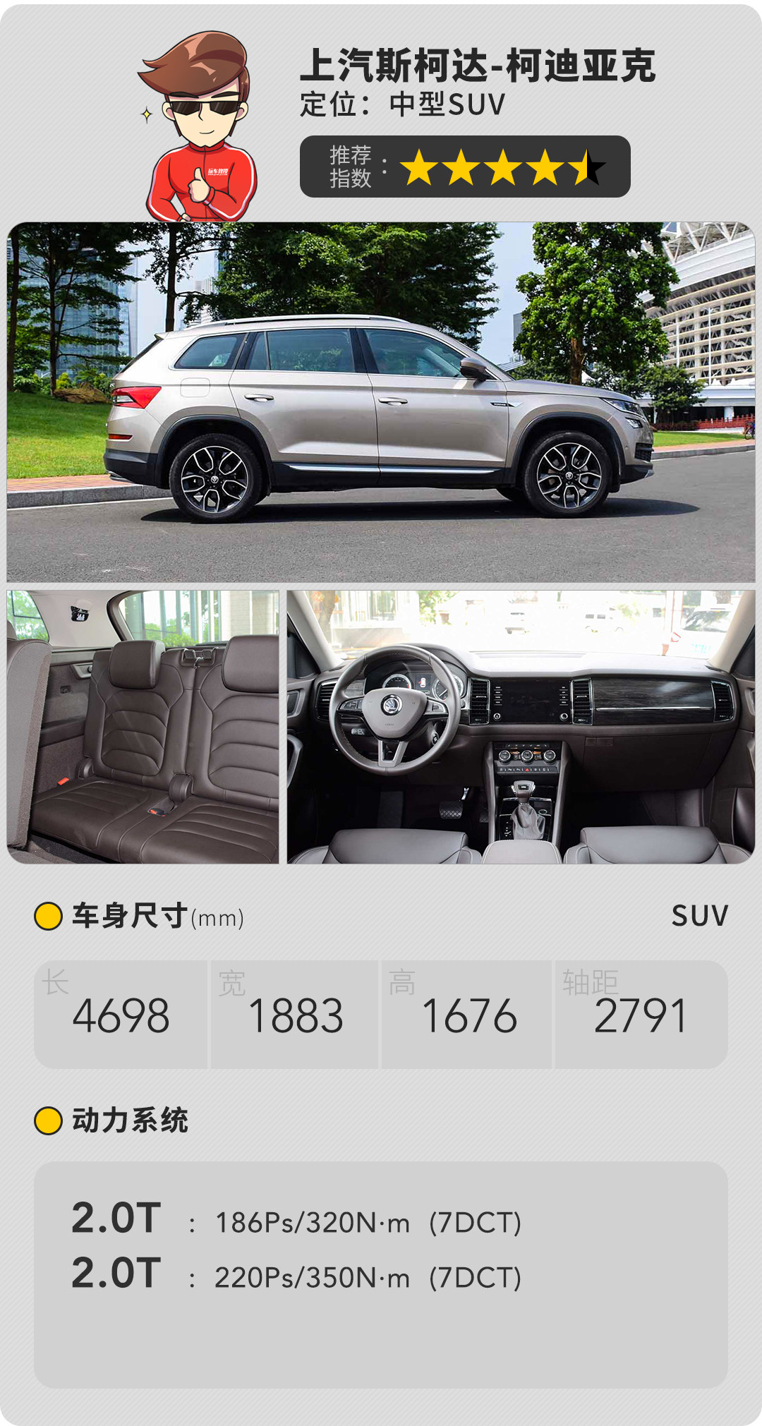 基于途观L同平台打造的柯迪亚克在国内还是收获不少消费者的青睐,而这也给后面的柯珞克和柯米克的到来奠定了基础。要说到柯迪亚克的优势,主要在于其空间和价格。价格上要比途观L便宜不少,这让很多消费者乐意去关注它。而在空间方面,除了车身长度比略短于途观L外,其他方面都相差不大。第二排座椅的前后调节范围有将近425px,在最靠前的情况下,第三排空间还算理想。最后需要注意的,就是柯迪亚克在内饰的做工用料上要比途观L逊色一些。