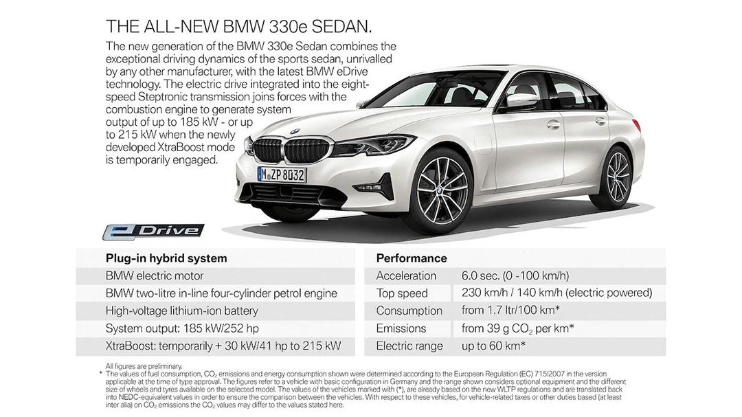 全新宝马330e搭载了2.0T四缸发动机,并匹配8速自动变速箱,其发动机最大功率为252匹,对比老款车型有4匹的提升,而电机可额外提供40匹马力,因此全新330e综合最大马力达到288匹。宝马官方称全新330e的动力总成可以让其在6秒左右完成百公里加速,但经过《MOTORTREND》的试驾,他们感觉全新330e的百公里加速比官方宣称的更快,因为老款330e的官方百公里加速为6.1秒,而全新330e在感觉上,比老款车型更快,新老款的差距就像现款330e与320i的差距一样。