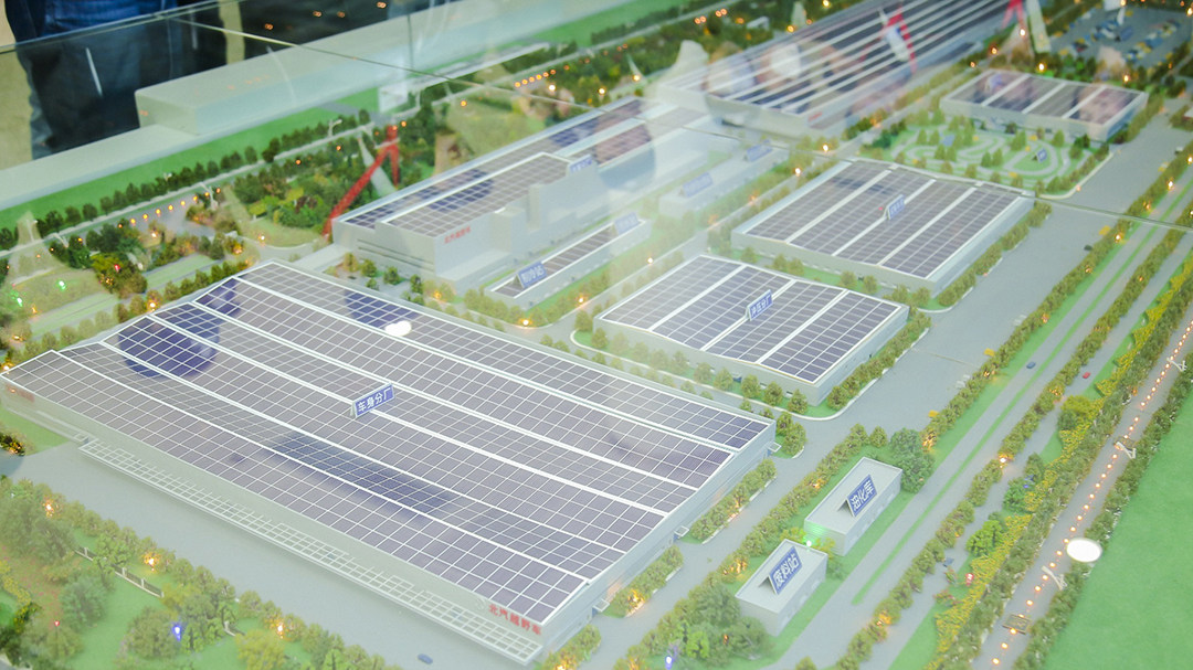 越野车工厂顶部设置了超大面积的光伏发电设施,其产生的电能目前可满足工厂70%的用电需求。