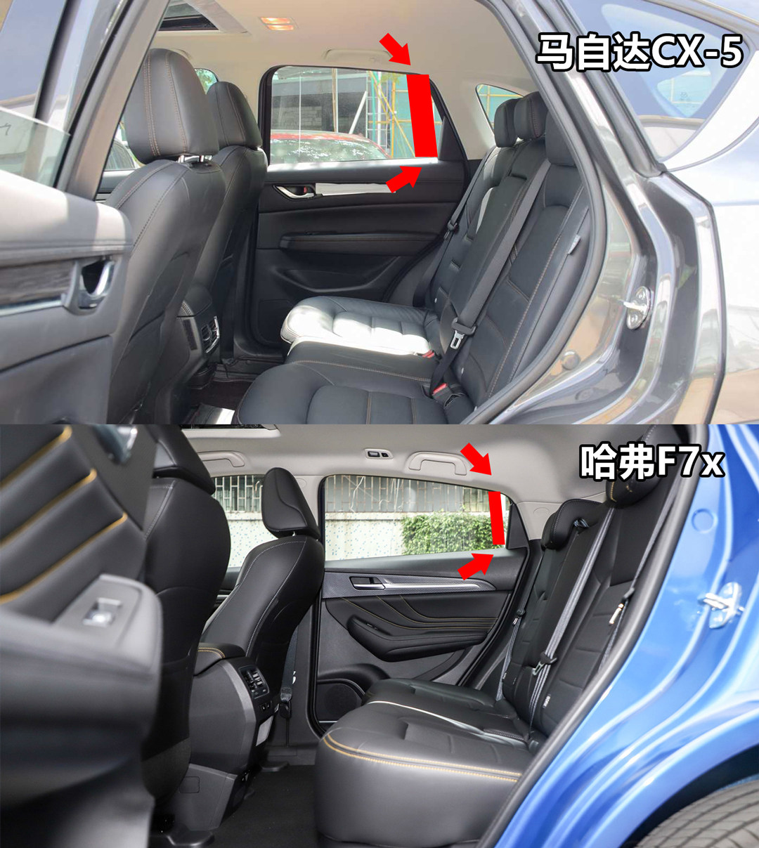 另外,同样是受Coupe造型所限,后排的乘坐体验跟一般SUV会有所不同,主要体验在:压抑感和开阳感。因为溜背造型会使得头部空间更小,同时车窗尺寸更小,像东风风光ix5那种更加低矮的造型,后排乘客的开阳感和宽敞感,会打一个折扣。