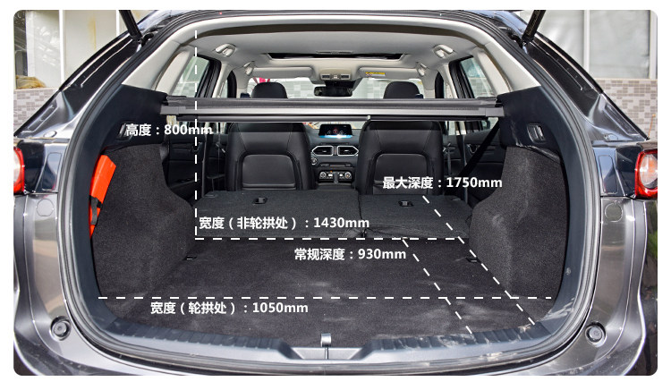 先谈谈后备厢空间,以最新上市的哈弗F7x为例,它的后备厢高度只有600-700mm左右,而对比实测过的同级紧凑型SUV,它们的后备厢高度大部分都在700-800mm,基本在800mm,除了后备厢高度,最顶端也会缩小一部分的空间。