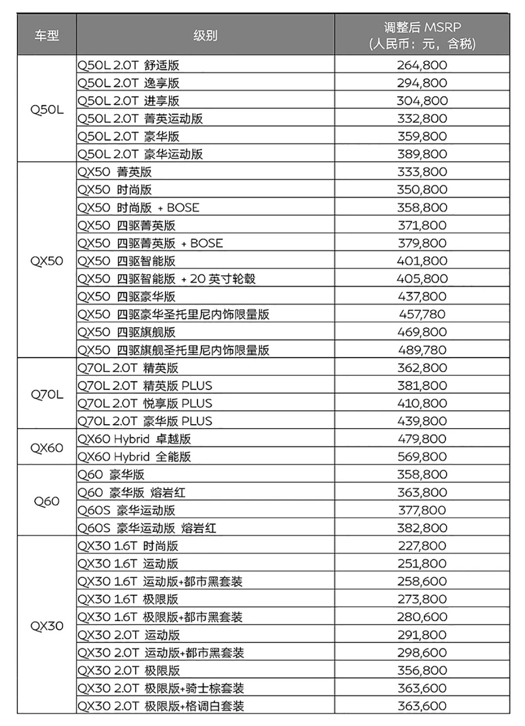 英菲尼迪方面,调整旗下全系车型在华的售价,最高降幅达2万元。目前,英菲尼迪在售车型的优惠幅度十分可观,有意入手的可以考虑。