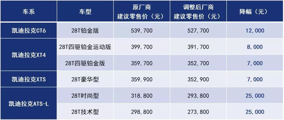 凯迪拉克降价幅度7000-25000元,其中ATS-L28T时尚型和技术型可享受25000元的降价优惠。此外,提供最长可达五年(60期)的超长期低利率按揭方案。