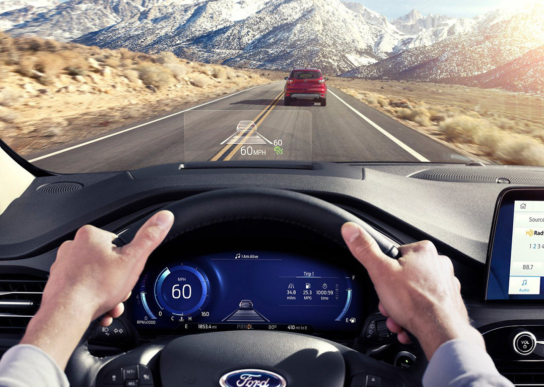 不同的是,Escape采用了更有质感的饰板,加入了12.3英寸全液晶仪表盘、抬头显示、全景天窗,降低了车厢廉价感的同时提升了车厢的科技感以及舒适性配置水平,从观感以及配置方面与福克斯的内饰拉开差距。