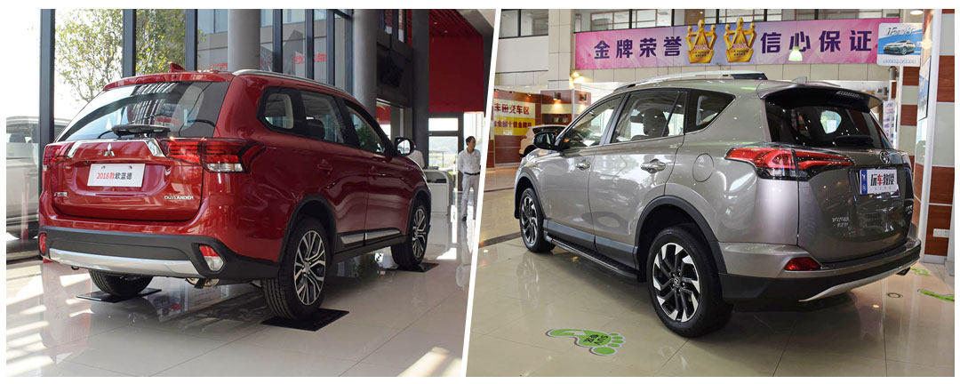 2019款三菱欧蓝德2.4L以指导价18.28万的两驱行政版为例,而2016款丰田荣放2.0L以两驱风尚版指导价19.78万为例。目前这两款车优惠完,欧蓝德在17.08万左右,而荣放在17.18万左右,所以价格上比较接近,我们就以这两款配置车型为谈论对象。