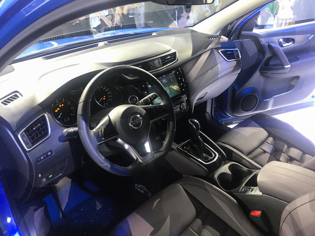 来到内饰,依然是熟悉的味道,全新逍客车厢布局与老款车型大同小异,最明显的变化在于方向盘换装了新款三幅式平底设计,为整个车厢增添了不少运动气息。排挡区域也经过重新设计,除了排挡杆的样式有所修改以外,在排挡区域两侧加入了皮质包覆的软垫,在提供额外的横向支撑同时,保证了舒适性。