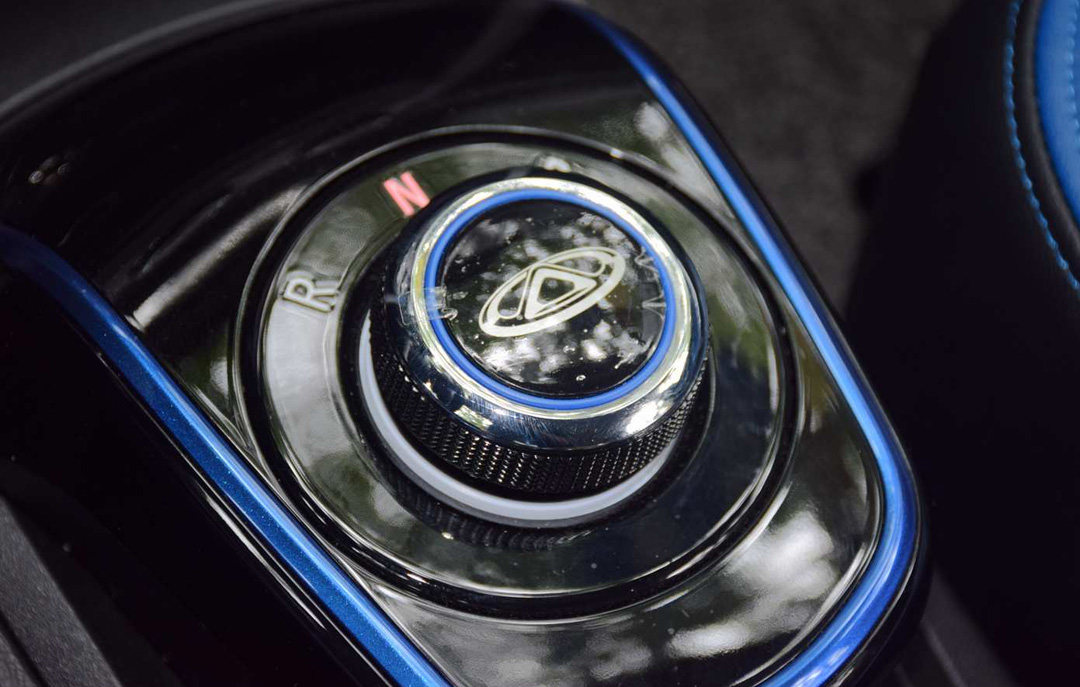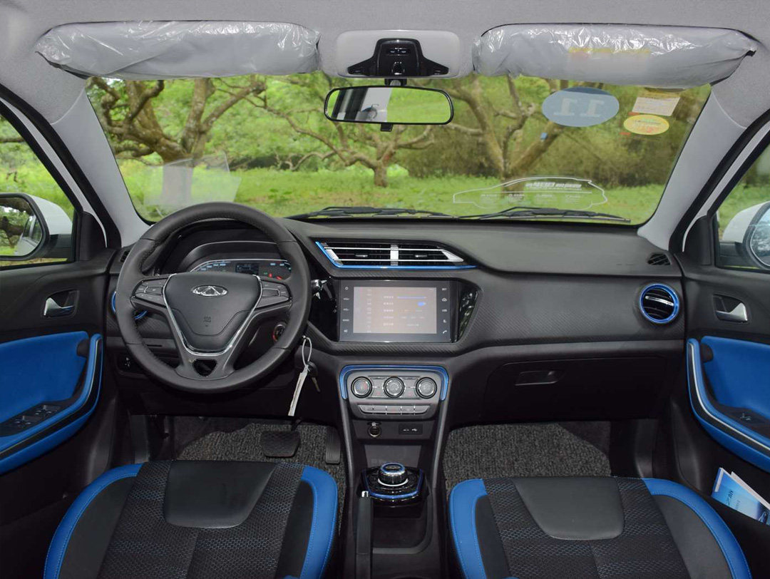 瑞虎3Xe 480的内饰设计样式还是与燃油版车型趋向一致,比较大的区别是变速箱换挡换成旋钮式换挡,内饰的配色采用蓝色+黑色的双拼色处理,并且仪表盘显示的信息和按键的布局有一些区别。