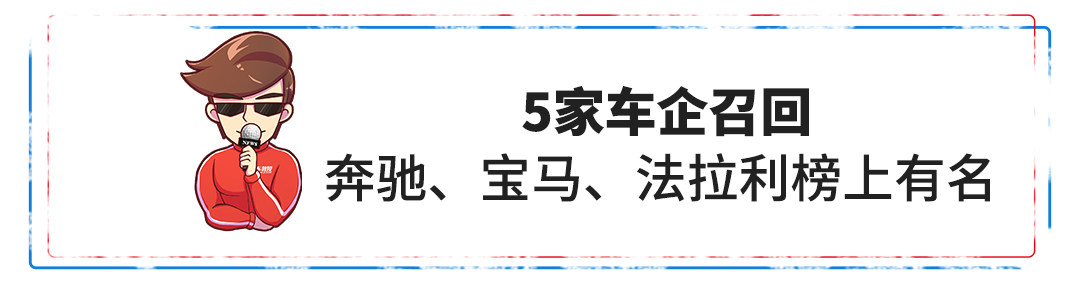 4月8日,国家市场监督管理总局缺陷产品管理中心公布奔驰、宝马、法拉利、斯巴鲁、阿尔法罗密欧在内的5家车企召回信息,详情如下: