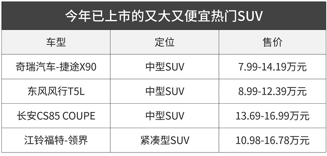 不知不觉2019年第一季度就过去了。这三个月里,上市的新车大大小小有上百款,其中SUV占了52%,而在这里面教授发现又大又不贵的SUV表现还挺亮眼的,而且热度不低。那它们到底是不是真的值得买呢?先来看看我们的分析: