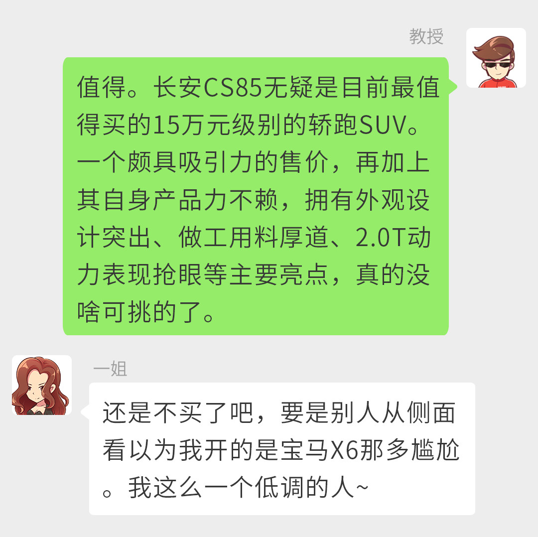 长安CS85 COUPE是长安汽车首款轿跑型SUV,上市至今关注度一直不低。在人们眼中性价比高得一塌糊涂的它到底有什么致命吸引力呢?教授分析了一下,发现下面这两点最为突出。
