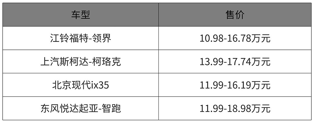 10.98万元的起售价,自动挡车型12.18万元起,这是一个对比于主流合资紧凑型SUV而言并不算高的售价。相比于13.99万元起的斯柯达-柯珞克、12.98万元起的奕歌来说,实力中规中矩的领界很容易以价格优势打入市场。