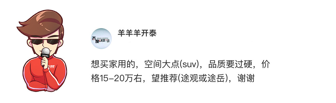 其实不用教授推荐,你自己就已经给了两款候选给自己了。不过教授这里不太推荐途观,不仅已经很久没有改款更新,内饰方面设计也很落后,唯一值得推荐的点可能就在于有大幅度的价格优惠。途岳就不同了,作为2018年上市的新款车型,采用基于MQB平台来打造,所以整车很多配置都比较高。后排空间绝对够大,唯一遗憾的就只有中间地板的凸起比较明显。所以在这两款车型里选择,途岳绝对是首选。