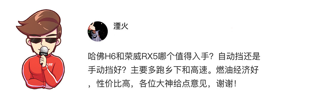 在自主品牌SUV市场里,H6一直依靠均衡的实力和良好的信誉长期坐在自主品牌SUV销量冠军的位置上。但同时RX5也是一款很有潜质的“黑马”,两款车型怎么选,确实会让人很苦恼。不过教授已经帮你总结好了,按照主要跑乡下和高速多的话,手动挡是首选,自动挡在价格上更贵,性价比并不高。然后根据燃油经济性来说,RX5会是最好的选择,新款H6在油耗方面已经作出很大的改进,但整体比起来还是差点意思。不过RX5有个值得吐槽的点,就是单独一个人驾驶的时候悬挂特别硬,在满载的情况下才有所缓解。