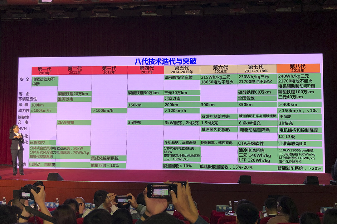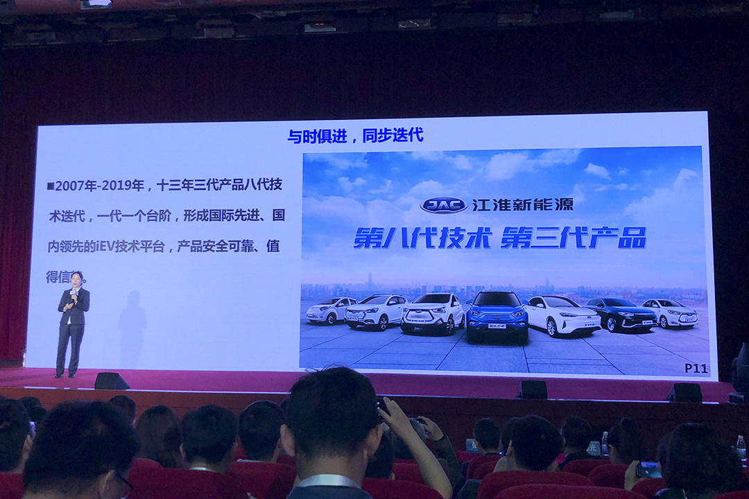 在2019年4月9日,2019 JAC品牌日活动中江淮汽车对2018年进行了总结:在乘用车领域,江淮汽车通过聚焦发动机、自动变速箱、车身轻量化、NVH、智能网联等核心技术创新,推动产品转型升级,重点推出新款瑞风S4等产品。在新能源领域,江淮汽车随着技术进步,不断开拓满足客户真正内在需求的市场,至今累计销量已超12万辆,2018年国内新能源中排名第四,增幅为80%。2018年的佳绩给予了他们信心,更推动他们发展;最终形成了今天的第八代技术、第三代产品。