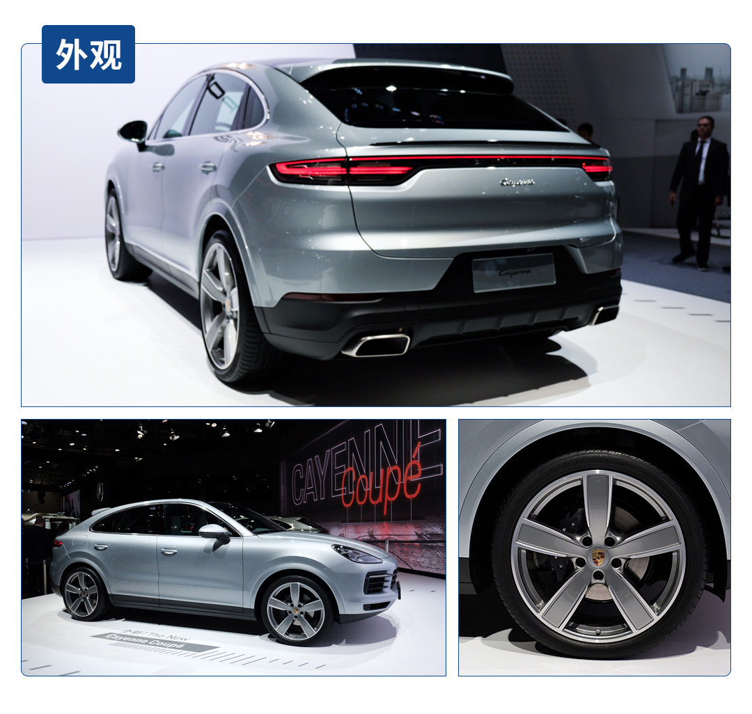 车尾部分,全新保时捷Cayenne Coupe依旧采用了贯穿式的尾灯,结合后保险杠下方的扩散器和双边共四出排气,显得动感十足。车尾部分的扰流板采用可伸缩式设计,当速度达到90Km/h时便可自动打开,与车顶固定的扰流板结合,运动感进一步提升。