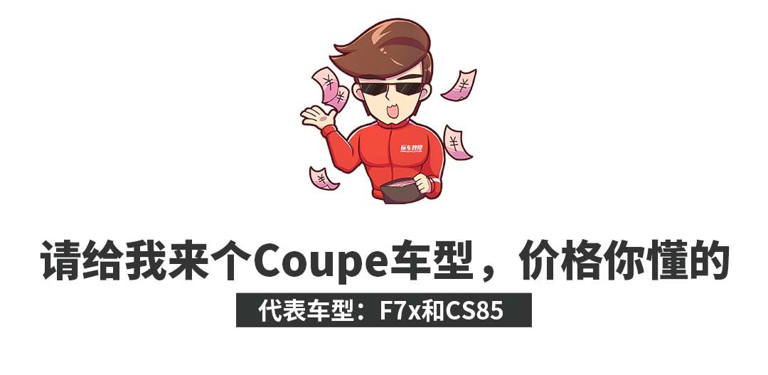 而值得一提的是,在严格意义上来讲的话,跨界车型和Coupe车型有着很大的本质区别的。但往前,有很多品牌车型都在滥用着这些车型名称,尤其是自主品牌。目前市面上的Coupe车型,豪华品牌居多。而一当踏上豪华领域,价格水涨船高。于是,哈弗F7x、长安CS85等自主轿跑SUV车型来了。长安CS85先期而来,而哈弗F7x紧随其后。在4月12日,11.99万的哈弗F7x,有着超低的售价,相信会捕获更多的车主。