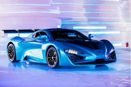 ARCFOX-GT搭载六电机,0-100km/h加速时间仅为2.59秒,其车身线条走势硬朗锋利,简洁而充满力量感的设计将赛道基因彰显无疑。