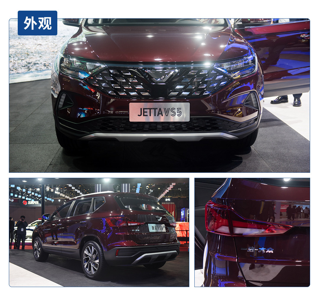 捷达VS5定位在紧凑型SUV,尽管与海外车型西雅特Ateca有着较高的相似程度,但源自大众、生于大众的捷达品牌,也算是彻底的摆脱了大众的“套娃”设计风格。外观方面,新Logo嵌入六边形的矩阵式前格栅中,上方的镀铬饰条将造型犀利的大灯连接起来,拉宽了车头的视觉感受。黑色前包围搭配银色护板,增添了几分越野的味道。