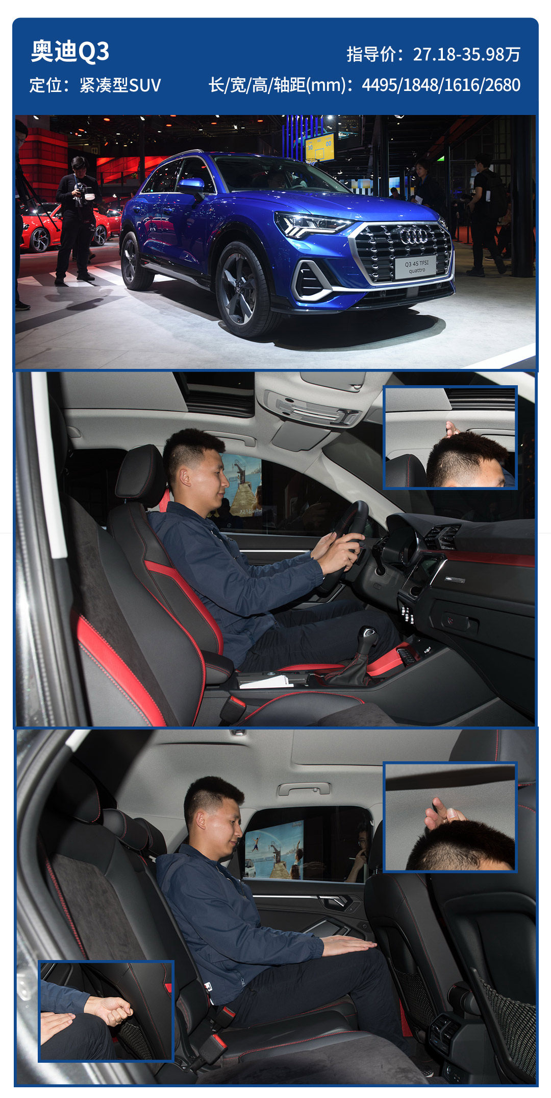 宝马X1勇夺此次横评中不分级别的冠军,后排有一掌(约两拳)+两指的腿部空间,头部空间表现也不错。不过宝马的座椅硬得让人心碎,估计是把运动座椅装错了。