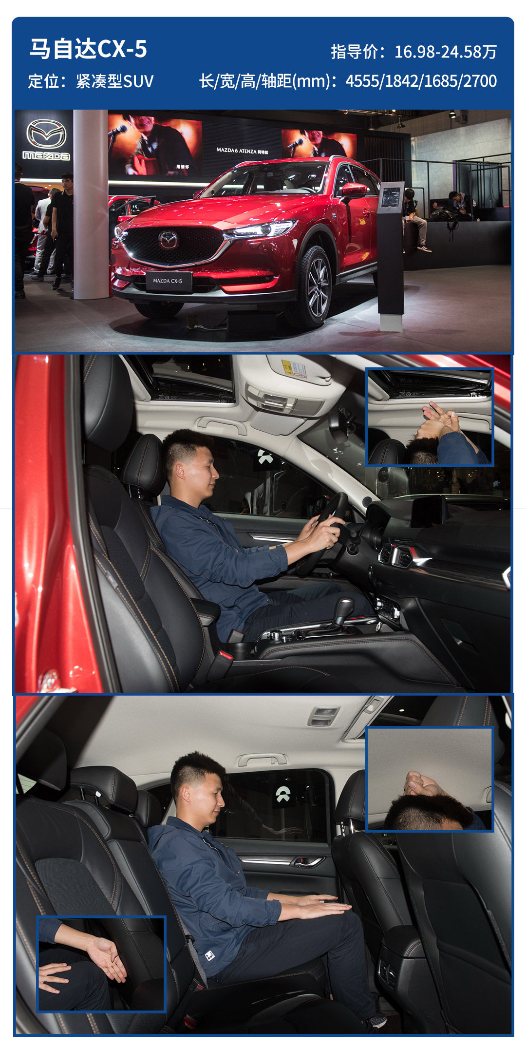 由于创驰蓝天4-2-1的排气歧管排列,所以马自达的车型车头大多数很大,侵占了轴距空间,以CX-5的轴距来说,它的空间是小了些。不过CX-5的座椅没有像一些主打运动风的车型那么死硬。