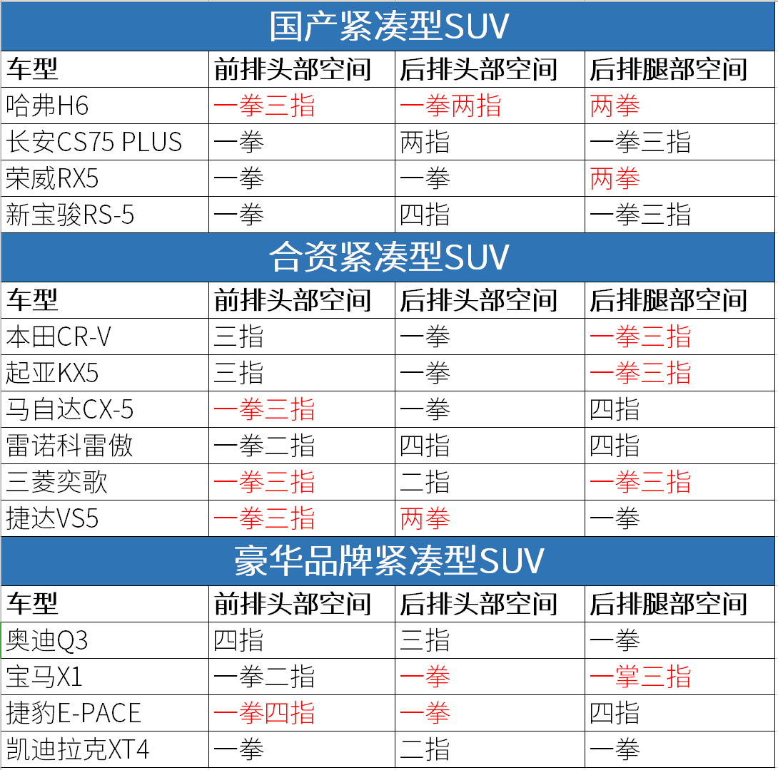 从行业整体表现来看,紧凑型SUV空间表现的排行顺序为国产紧凑型SUV>合资紧凑型SUV>豪华品牌紧凑型SUV。如果某天中国汽车的产品质量和性能能够与合资品牌平起平坐,说不定市场份额也会随之大变。