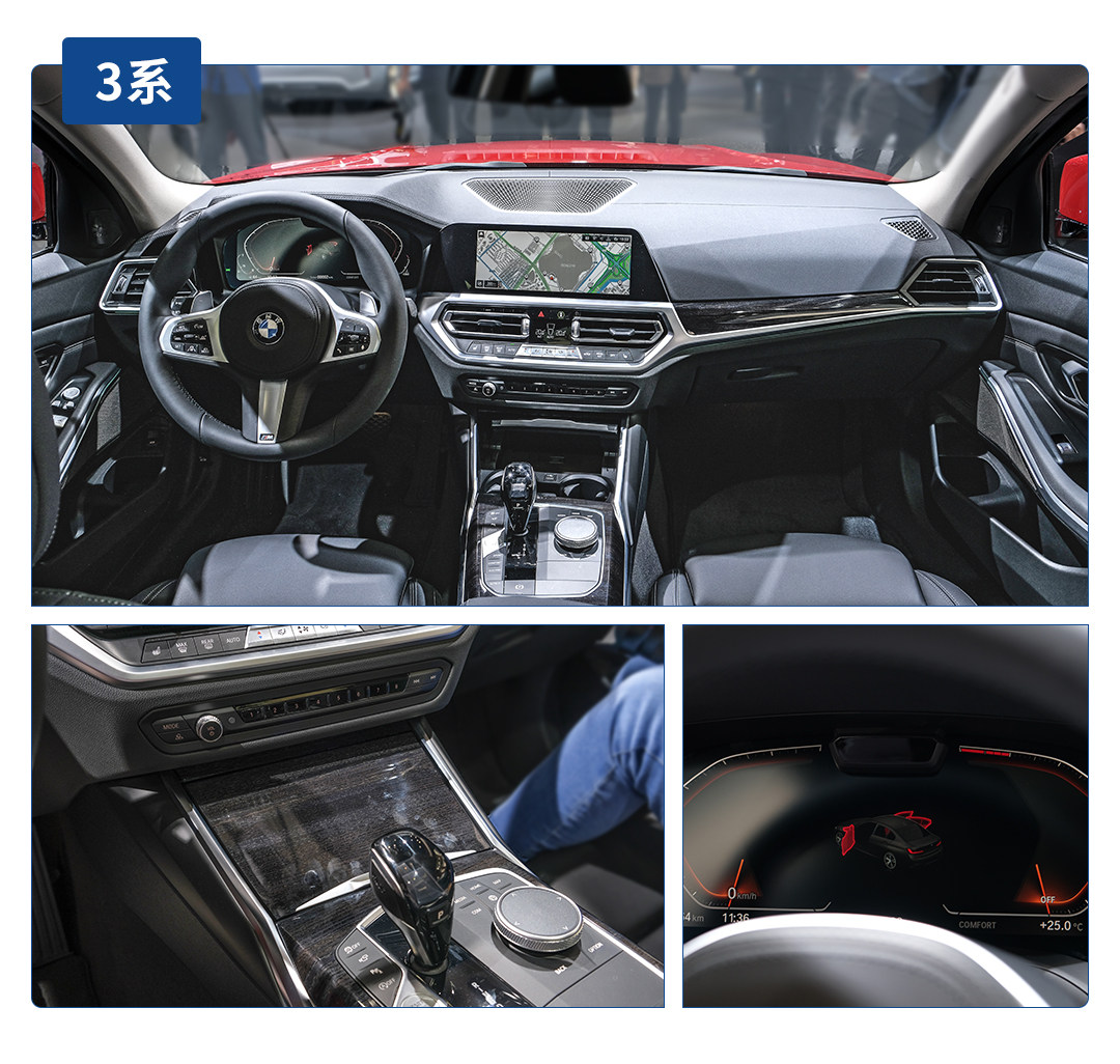 车内的饰板方面,无疑是奔驰和奥迪做得更好,用上的饰板手感都是比较细腻的,质感很棒,像A4L也会有一些磨砂手感的木纹饰板;虽然宝马的车内用料豪华感有提升,但并不是传统的表达形式,以皮革和高亮漆面为主