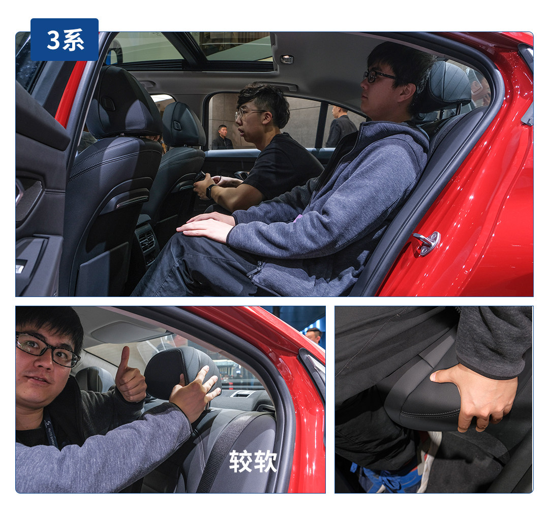 值得一提的是这一代的长轴3系座椅非常软,对比了一下应该是三者当中最软的一个,包括靠垫还有头枕,其次是奔驰,然后就是奥迪,倒不是说奥迪的座椅硬,其实并不硬,只是宝马的变得更软了。