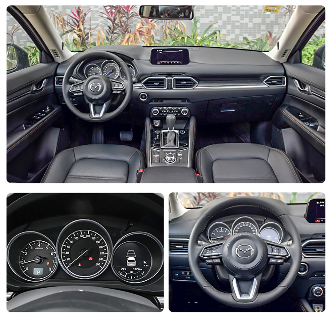 CX-5的内饰采用了悬浮式中控屏,空调出风口比较对称,三炮筒仪表盘营造了运动的风格。CX-5内饰的手感是三辆车中最好的,大面积的皮质材料手感细腻。