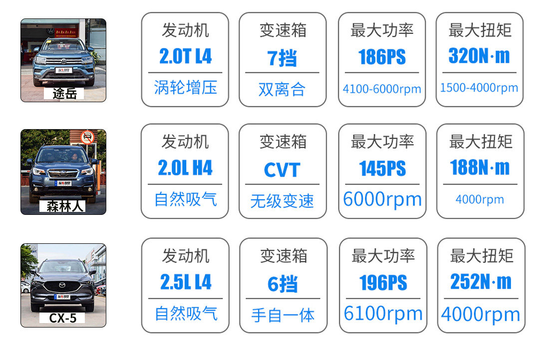 途岳卖得好不是没有道理的,各方面都很均衡,动力更是让很多求快的小伙伴满意。不过森林人和CX-5实力也很强,空间与途岳接近,驾驶体验又有自己的特色,你怎么选?