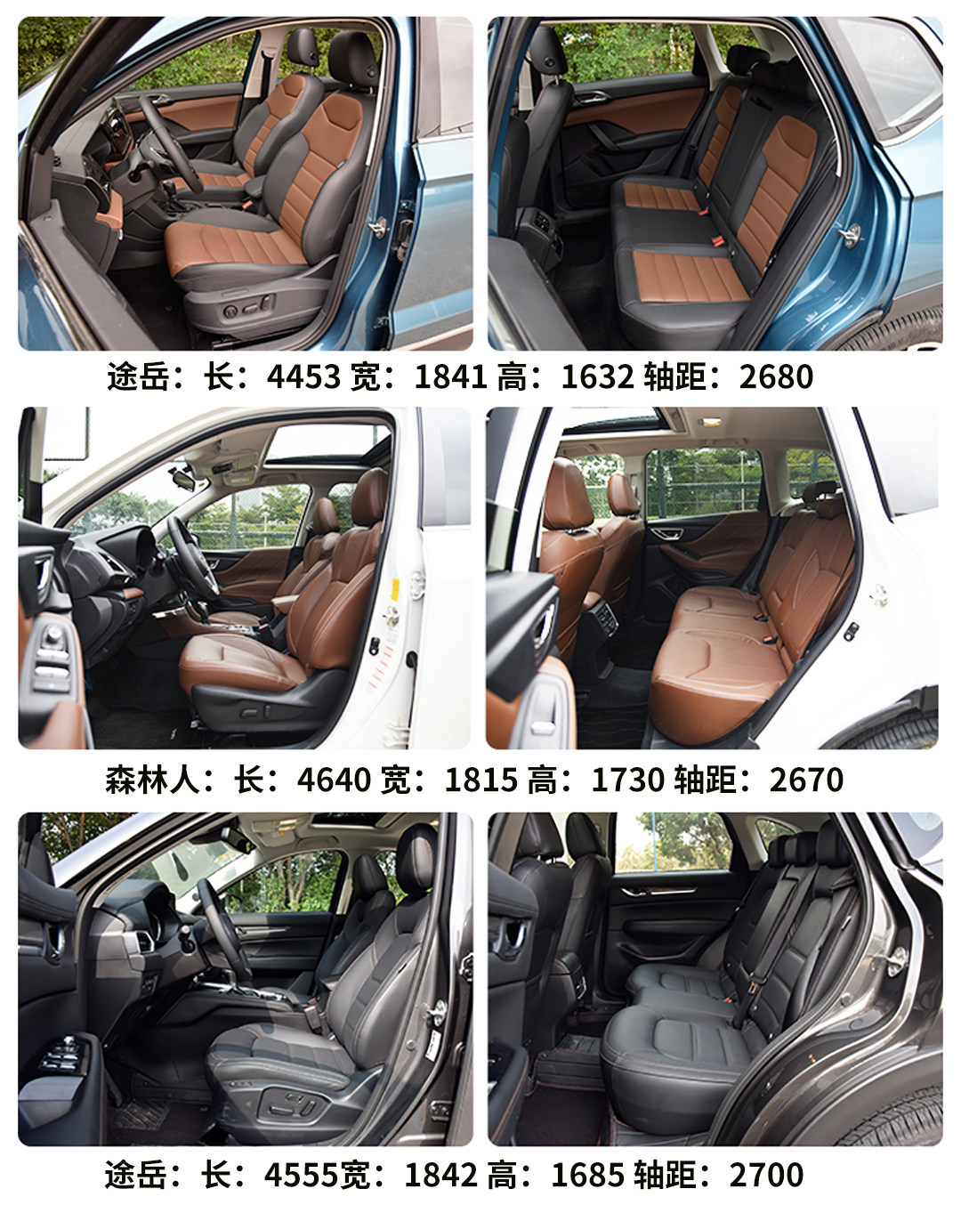 这三辆车的乘坐空间是够用的,首先途岳无论是前排,还是后排的头部空间都有优势,180cm的小伙伴前排头部还有1拳空间,后排头部4指,后排腿部空间1拳3指;森林人后排腿部2拳有余,不过前排头部空间为4指,后排头部仅为2指;CX-5前后排头部空间都为3指,后排腿部空间1拳2指。 综合来讲肯定是途岳的乘坐空间有优势,不过其他两车也不会相差很远。