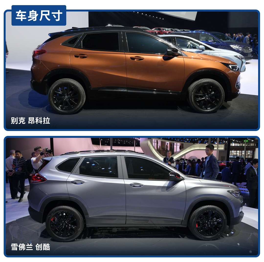 昂科拉的车身尺寸为4295*1798*1616mm,轴距2570mm;而创酷的车身尺寸为4270*1791*1602(1618/1627)mm,轴距2570mm,对比后能够发现,两款车型的车身参数非常相近,且轴距相同。虽然我们没办法进入车内进行空间体验对比,但就参数表现来看两者的空间水平应该也十分相似。